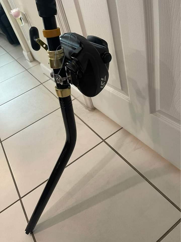 Daiwa Tanacom 1000 electric reels mounted on a Captain Harry’s bent butt rods with swivel tip and titanium guides. The reel is full braid and ready to fish.