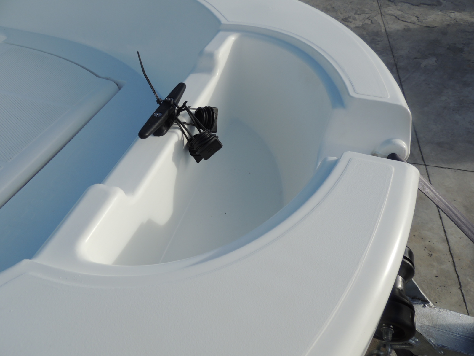 All the internal and gunwale surfaces are non-slip, and the hand rails are more usable than its predecessor. Other features include through hull drainage in anchor well, easy boarding via the larger rear steps, drainage channel on floor, divider option for front storage compartment, wide gunwales and a recessed tow eye .